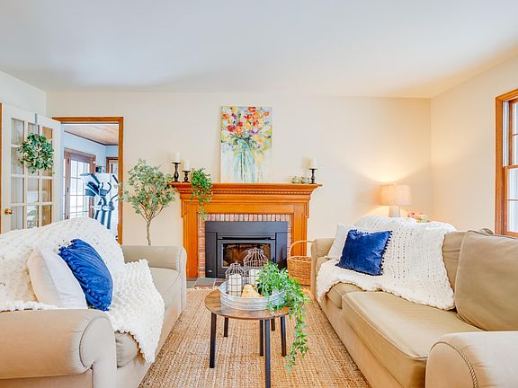 Tucked away in the quaint Pinewood Manor neighborhood, this elegant Cape welcomes you. You'll love cooking in the updated kitchen, relaxing in the cozy sunroom overlooking the backyard, and entertaining in the open living room. Enter the home through the front door and into the foyer. From the foyer, step into the sun filled living room. The space boasts charm with hardwood flooring, built in shelves and a new wood fireplace. The sunroom is off the living room, a space that can be enjoyed year-round. Moving through the home, you'll enter the dining room, featuring a large bay window. The kitchen is an entertainer's dream. The kitchen is truly the heart of the home; displaying stainless steel appliances and a flexible sitting area with a gas fireplace. A convenient mudroom is off the sitting area, and provides access to the attached 2 car garage. The first floor is complete with an office and 1/2 bathroom. Upstairs reveals a spacious primary bedroom suite, with walk-in closet and 3/4 bathroom. Across the hall you'll see 2 additional bedrooms and a full bathroom, with double vanity sinks. The basement offers an abundance of space for all your needs. A 3/4 bathroom and laundry space are found in the basement. This home benefits from owned, off grid solar panels with battery backup and has heat pumps throughout. Outside the home, enjoy the wonderful yard or some of the walking paths near the neighborhood. Just 20 minutes to Burlington and less than 10 minutes to Essex amenities!