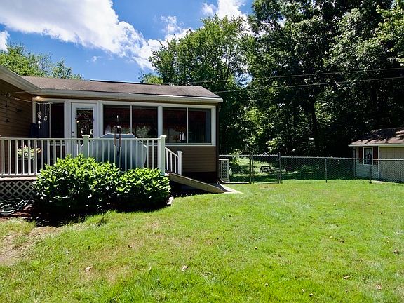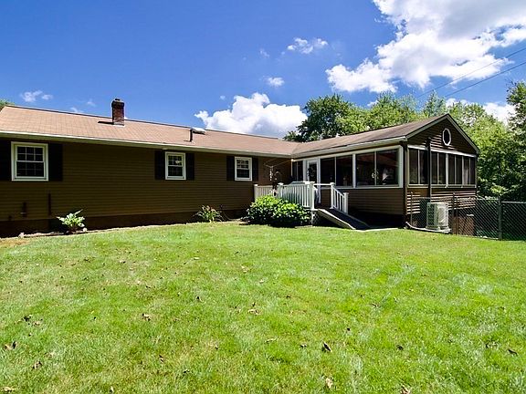 Welcome home to this beautiful 3 bedroom, 1 bath ranch on a quiet, corner lot. Set back from the road this home is surrounded by woods and offers incredible privacy. Summer days will be spent in the spacious backyard relaxing in your above ground pool. Inside you'll find a bright and cheery kitchen that was remodeled in 2020. With soft close, pull-out cabinets and doors, a Corian center island, and black stainless steel appliances, no detail was overlooked! Throughout the rest of the home are beautiful hardwood floors, a wood-burning stove on a brick hearth and an amazing (and huge) 3 season sunroom. The sunroom is equipped with a heating and cooling mini-split, and remains functional for much of the year. There is a second mini split unit that cools the back half of the house and each bedroom has a ceiling fan. The furnace and oil tank have been replaced in the last several years. The workshop is heated by propane.