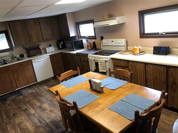 You are just steps away from Lake Ontario in this 4-bed, 2-bath, 2-car garage ranch house. The Right of Way to the lake is about 50' away. Enjoy summer swims, kayaking, and breath-taking sunsets only moments away. The kitchen laminate floor and furnace are brand new (Sep.2020). The bedrooms are nicely sized, and the family room is welcoming. Off the back is a 18 x 20 composite deck with hot tub. The garage is large and has served as a workshop for many years. There is also a detached garage that could hold a car or serve as added storage.