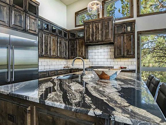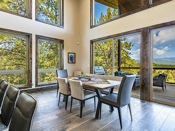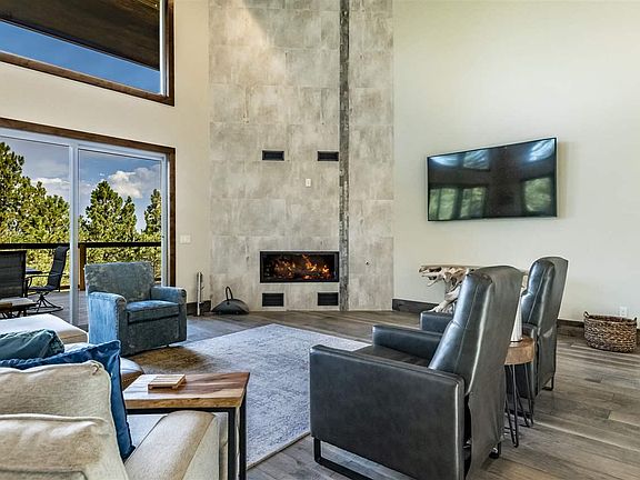 Welcome to a brand new custom contemporary mountain home with views of the Wheeler Peak Wilderness range and just minutes from the Angel Fire Resort mountain park and golf course! This spectacular home features 4 fireplaces (including one on the spacious covered deck, 2 large gathering areas (both with fireplaces, a spacious master suite with fireplace, 2 utility rooms and a kitchen a master chef would call fabulous. Completely furnished with high end appliances and expensive furnishings. You'll love the large master closet, complete with its own washer/dryer and in the bathroom you'll find an upscale soaking tub and separate shower. The game room features 2 TV's and a pool table, and even built in bunks! The large covered deck will provide space for making a lot of generational memories while enjoying the fireplace and views of the valley and mountain ranges. The great room features a wall of windows so you can enjoy the scenery from anywhere!