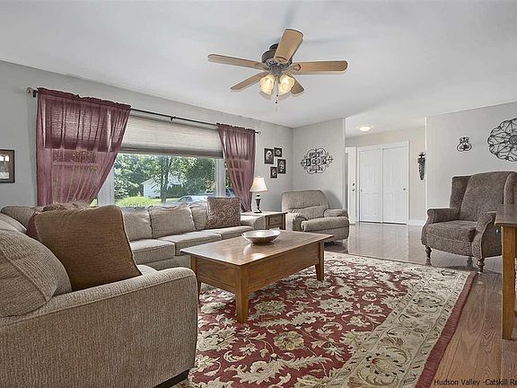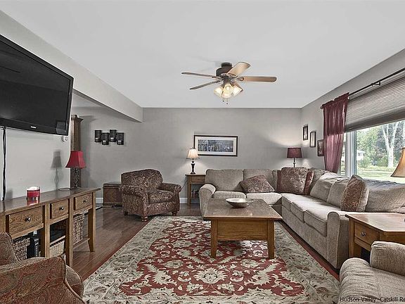 Located in a sweet, private enclave of houses right in the heart of Stone Ridge. Sweetly sited on a pretty property, with a nice sense of privacy is this well maintained country property. Enter well proportioned rooms which include a formal dining room, large eat-in kitchen, and spacious den with fireplace and separate full bath with walk-in shower. The Den with large glass doors lead to multi level deck and out to sweeping lawns, mature gardens, adirondack fenced garden area and lovely sitting tree. Perfectly sized bedrooms, including main bedroom with en-suite bath. Full finished basement with heat. This is a much sought after location that offers privacy and quiet in a peaceful setting yet with the ability to walk to Town, restaurants, shops and schools.