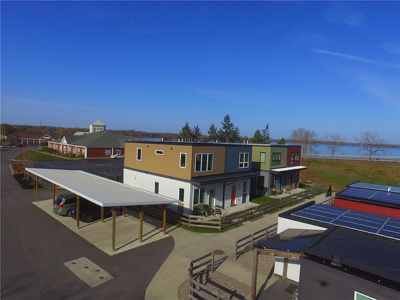 In-town location with direct access to beautiful Seneca Lake in the heart of wine country. Live in a vibrant Solar Village of 20 homes, each with integrated renewable energy, in the nation's first Net Zero Energy modular housing development. This townhome was ranked the #10 most energy efficient home in the US in 2019 by RESNET, Residential Energy Services Network. Premium build quality with solar panels, triple pane windows, hardwood floors, structural insulated panels for external walls, double stud wall construction in adjoining walls for soundproofing, and individual heat-activated sprinklers for added safety. Walk to city offices, shopping, restaurants, the Farmers Market. Walk or bike the 2.5 mile waterfront trail to Seneca Lake State Park, Jennings Beach, the free boat launch for city residents, city boat docks, long pier, Finger Lakes Welcome Center and free EV chargers.
