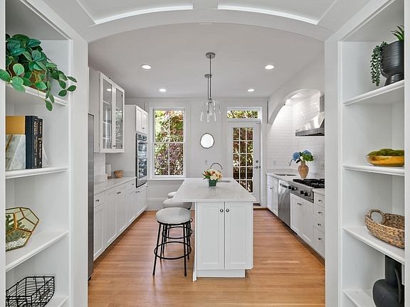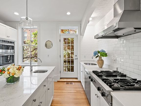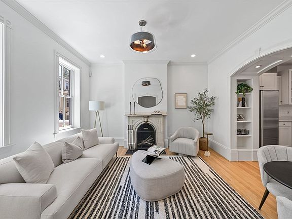 Beautiful, 3++BR/2.5BA, brick single family home on highly desirable Soley Street, offering 2,300+/- sf of well-appointed living space. Stunning historic detail combined w/classic finishes make this home truly special. The sunny living/dining room features a white marble FP, and flows to a stunning custom kitchen. The chef’s kitchen offers a center island w/bar seating, white quartz countertops, stainless steel appliances, sleek white cabinetry, and plentiful storage. Two spacious bedrooms, an office, and full BA w/tiled shower and tub complete the second level. The entire third floor is home to a serene primary suite overlooking a canopy of flowering pink Dogwood and red maple trees. A custom walk-in closet, and full bath w/tiled shower/tub complete this level. The walk-out garden level offers a mudroom, media room w/custom built-ins, and direct access to a private bluestone garden patio w/magnificent pink dogwood. Laundry room, and spacious sub-basement provide incredible storage.
