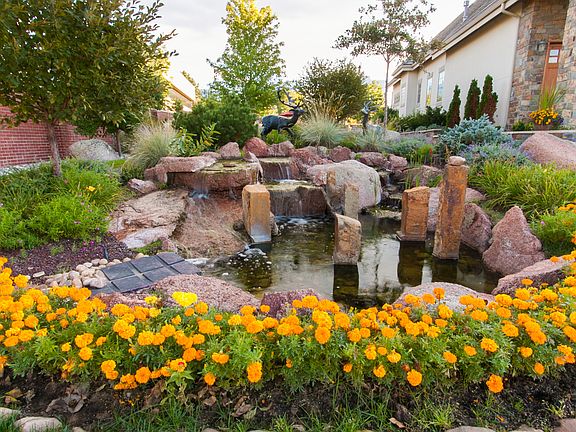 Greenwood Village Oasis Welcome to 30 Sommerset Circle. At last here is a home that has everything, the location is close in, the finishes are the finest, and the setting spectacular. The home is on almost half an acre with waterfalls, ponds and a fountain greeting you at the front door. The outdoor living space is perfect for entertaining, with a restaurant caliber kitchen, that includes a smoker, a pizza oven and a wok station, viking grill, warming ovens, ice maker and refrigerator. The interior has luxurious finishes with hand troweled plaster, hand hewed hickory wood floors, and granite and marble countertops.