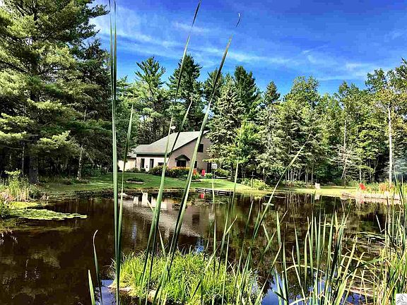 This 5.5 acre property in Esko feels magical. From the moment you turn down the circular asphalt driveway, travel thru the mature white pine trees, catch a glimpse of the wonderful expansive pond complete with wide open trails all around, you'll experience its uniqueness. This lovely 3 bedrm, 2 bath home is perfectly positioned to observe an abundance of wildlife from every room in complete privacy. The kitchen has been updated with all new stainless appliances, granite counters, and is open to the dining and living room. Entertain guests inside by cozying up to the gas fireplace, or outside on the large deck overlooking the pond. The Master en suite, laundry, sauna, and mechanicals are all on the main floor. Upstairs you'll find two bedrms and a sitting area. This home has been freshly painted, has hard wood floors, new carpet, new lighting throughout, central vac, geothermal heat, air exchanger and heated attached two car garage. Truly a must see.