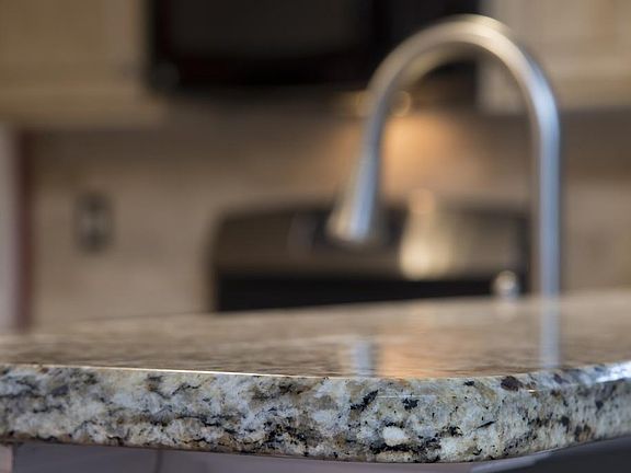 - Kitchen Features: Breakfast Bar, Eat-in Kitchen, Solid Surface Counters, Stone Counters, View to Family Room, Kitchen Island, Pantry Walk-in