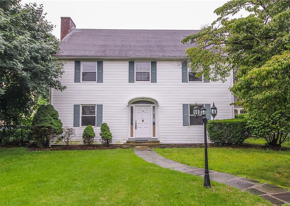 Run don't walk to see this charming center hall colonial with hard wood floors throughout. Gracious foyer, Spacious sun drenched living room with wood burning fire place. French Glass doors that lead into a sunroom. Modern Eat-in kitchen with a sub zero, viking stove. Large dining room with lots of windows. powder room on the first floor. 2nd floor 3 bedroom, 2 full baths, a 4th bed, family room or a private office with a separate entrance. This wonderful spacious home offers excellent light and is a corner property with a 2 car attached garage. There is also a huge walk up attic and a large unfinished basement with laundry room. The house needs updating but great layout!