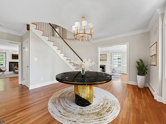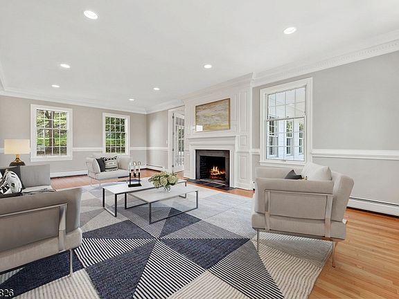 A meandering drive leads to this wonderful Georgian Colonial perched on private Spring Hill Road with tranquil views. A bluestone covered porch with high ceilings and architectural columns ushers you into the foyer featuring a sweeping staircase. The formal dining room has ample space for entertaining and opens to the gourmet kitchen. Custom inset cabinetry, granite counters, professional-grade appliances and island seating are complemented by the kitchen dining area and intimate family room with fireplace. The adjacent great room is generously-sized and offers a fireplace, tray ceiling and doors to the patio. A formal front-to-back living room has yet another fireplace and is ideal for seating multiple groups as well as space for a piano. Nearby, a private office includes a separate entrance and walls of windows. Adding convenience to everyday life, the first level also has an oversized mud room, a half bath, a formal powder room and separate back staircase. The fireside master suite has views of the lush backyard, a spa bath with separate steam shower and jetted tub, a private balcony and custom closets for every season. Two more spacious bedrooms have custom closets and are connected by a full bath with shower and two sinks. Across the hall is an ensuite bedroom. The open den and office area is located further along the hall and beyond lies a spacious, vaulted ceiling bonus room fitted with a private bedroom and bath, conveniently placed by the kitchen's back staircase. A laundry suite completes this level. Outdoors, the paver patio hosts endless entertaining possibilities with an in-ground pool, al fresco dining areas with lovely stone walls and professional landscaping. An oversized three-car garage is located off the mudroom while an additional four-car garage is reached by a separate drive. Pride of ownership is evident with fresh updates, a new roof and a new septic system. Mendham Borough in Morris County includes the charming and historic village of Mendham for dining, shopping and highly-rated schools. The world class Roxiticus Golf Club and Mendham Golf and Tennis Club, equestrian facilities and the lively downtowns of Bernardsville and Morristown for Midtown Direct train service to Manhattan are all nearby.