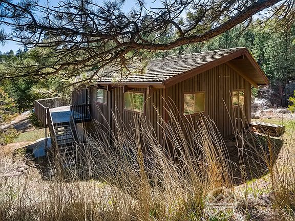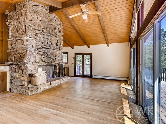Wonderful Mountain Retreat with views of the city. This property is beautiful and private with a seasonal stream. 1.7 acres of trees, native flowers and grasses. Home features floor to ceiling wood burning rock fireplace, wood beams, cedar vaulted ceilings, hardwood floors and wall of windows with two 8 ft wide sliding doors leading out to deck. Home is within 10-15 minutes to downtown Boulder. Needs updating but the potential is unlimited for the location.