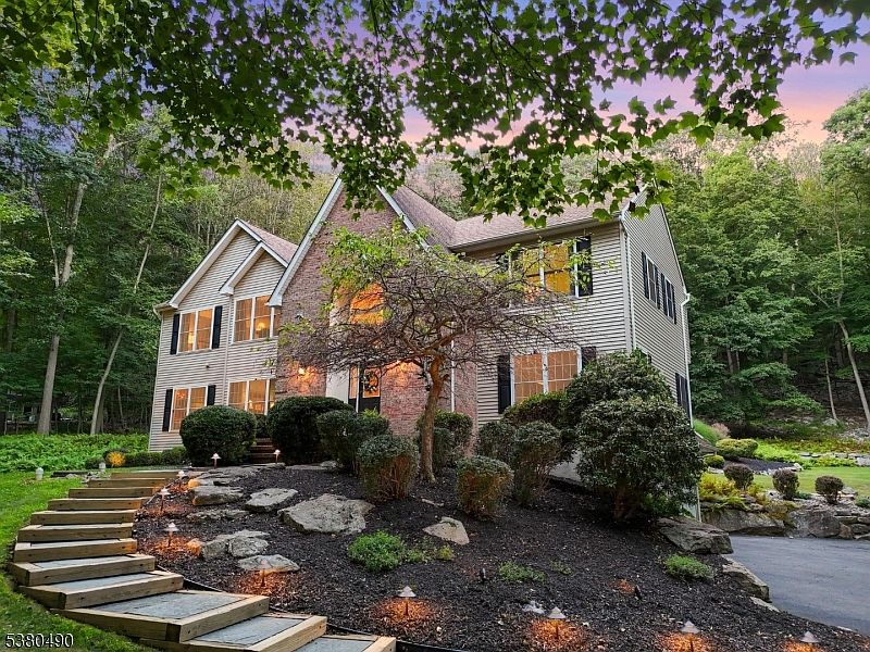 Experience the perfect blend of natural beauty and modern comfort at 30 Squire Hill Rd, nestled in the desirable Squire Hill neighborhood of Long Valley, NJ. This meticulously maintained home offers incredible privacy and stunning outdoor living spaces, including inground pool, deck, oversized patio w/fire pit, spacious yard enhanced by lush landscaping and outdoor lighting. Inside, a welcoming two-story foyer and 9-foot ceilings set the tone for the open layout featuring hardwood floors throughout foyer, dining room, kitchen, living room, family room. The updated kitchen is a chef's dream w/granite countertops, maple cabinetry, SS appliances, pantry. 1st floor also includes laundry room, powder room. Family room, highlighted by skylights and wood-burning FP, serves as heart of the home. Upstairs, generously sized BRs await, including spacious primary suite w/sitting area, walk-in closet, full bath. Additional features include newer thermal windows, newer water heater, two-zone heating/CA, generator hookup, partially finished basement w/rec room featuring pellet stove, mud room, ample storage. Located in Long Valley, known for excellent schools like West Morris Central HS w/IB Program, this home offers easy access to shopping, dining, major routes 46, 80, 78, and 24, as well as NJ Transit trains, buses for convenient commuting. Nearby parks such as Columbia Trail and Skinner Farm provide outdoor recreation opportunities, making this property a true retreat in Morris County.