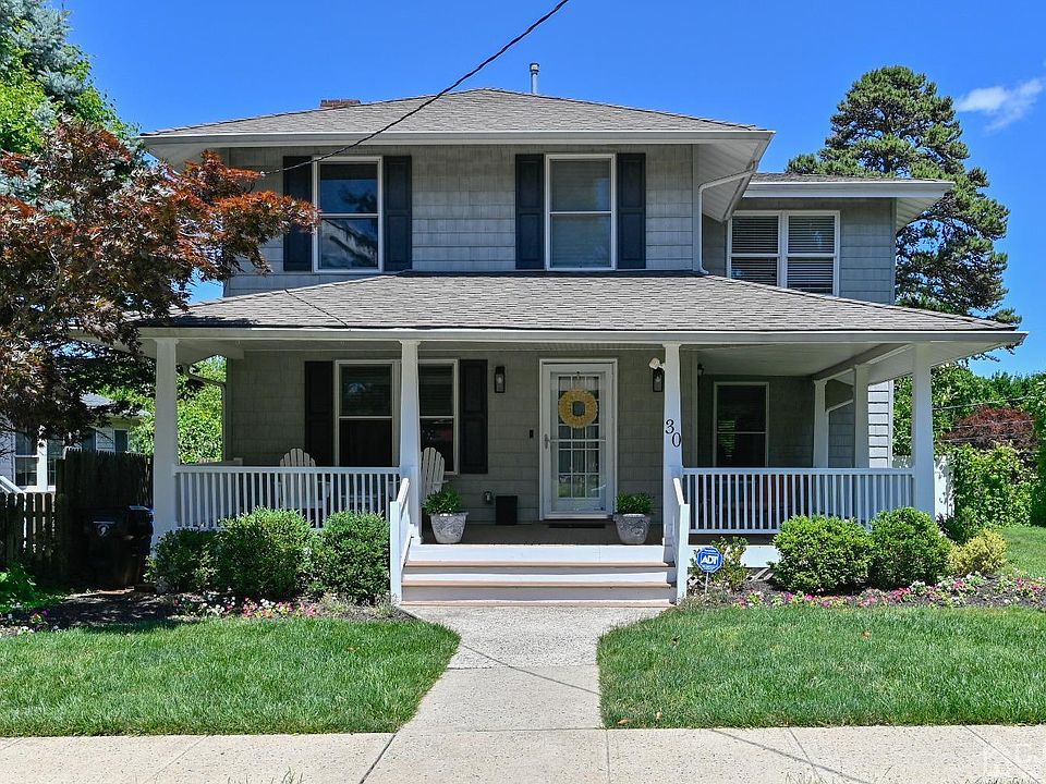 Gorgeous 4 Bed 3 Bath Colonial with Full Finished W/O Basement & Master Suite is sure to impress! This beautifully upgraded home boasts countless modern features, amenities & instant curb appeal with a wraparound Front Porch & cedar shake. Foyer entry gives way to a spacious & sophisticated interior with gleaming HW flrs, crisp crown molding, recessed lighting & cooling modern palette. Stunning 3-sided stone Fireplace can be enjoyed from every main lvl room. Formal Dining rm & spacious Living rm holds a slider to a blissful SunPorch with ceiling fan. Lovely Eat-in-Kitchen offers SS Appliances, granite counters, center island & garden window. All 3 Full Baths feature sleek, high-end tile work. Convenient Laundry rm, too! 4 Generously sized Bedrooms, inc the Master Suite with WIC, ensuite bath & your own private balcony! Full Finished W/O Basement adds to the package with large Rec Rm, Office Area & storage. Dual Zone Air, too! Magnificent Backyard boasts a 3 level Deck, Travertine tiled Patio that never gets hot, Gas fed Firepit, Gas fed BBQ, storage shed & is fenced in for your privacy! Situated in a charming neighborhood, you're just steps to desirable downtown Red Bank's top restaurants, nightlife & more! Easy access to NYC transportation, with Red Bank Station just one mile away! Short ride to NYC Ferry, minutes to beaches, county parks, hundreds of hiking/bike trails, the list goes on! Truly a Move-in-Ready MUST SEE!