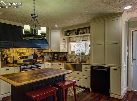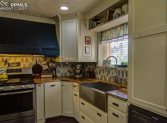 Country living at its best! Acreage accommodates horses, goats, chickens, and folks of all ages! Property is perimeter fenced & cross fenced w/ horse paddock. Hay and saddle shed + loafing shed & heated water tank. Household well that allows for domestic animal watering. Chicken coop w/ brooder + goat shed; electrical & double fenced. Built in trampoline & play area w/play house & swing set. Rock outcroppings & large pines grace the property. Home was professionally & artfully renovated in recent years by completely updating every part of it, incl. a custom kitchen w/ pull-out coffee bar, spice drawers, wood-grained countertops of black limba, large walnut cutting board island; Commercial vent hood w/ pot filler, farm sink w/ commercial faucet, Bosch dishwasher, & large drawers & cabinets ceiling height along w/ crown molding throughout. Adjoining office w/ large back deck incl. built-in desk & filing cabinets, bookcases, sewing/craft island w/ walnut cutting board top, & abundant storage. Laminate flooring throughout the home for easy cleaning. Main level master bedroom suite incl. French doors to back deck, custom closets & large drawers for storage, water closet, 3/4 custom bath w/ vessel sink, built-in dressing area, & dual shower head walk-in shower. Living room incl. wood-burning fireplace, large picture window & walk-out to the front balcony, perfect for morning coffee and sunrises. Main level also includes a full bath w/ custom cabinets & vessel sink, an addt'l sunny playroom/TV room or non-conforming bedroom w/ built-in book shelves & chalkboard wall. LL has a walk-out basement, incl. office/entry, & spacious music/game room + spacious theater room, w/ built-in bookcases; 2 additional bedrooms w/ built-in loft beds, as well as a storage/utility room. The exterior boasts 2 greenhouses, 1 dirt floor, another w/ a cistern in the floor. Adjacent, 408 sf guest house under construction, needs electrical & plumbing + finishes.Would make a great Air BnB.