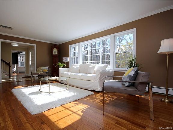 Ready for summer? The pool is open and the bountiful fruit trees will soon be flowering City sophistication meets country retreat in this light-filled, updated & stylish colonial. Lovely grounds with a pool/spa at the end of a quiet cul de sac in desirable south Wilton, on the border of Westport. Designed for today's living, this lovely home has it all 4 Bedrooms, 2.5 Baths on 2 acres. Freshly finished hardwood floors throughout. Main level includes a Living Room with fireplace, formal Dining Room with bay window, Gourmet Eat-in Kitchen with all high end stainless appliances and stone counters. Huge Family Room with brick fireplace and sliders to screened porch overlooking an in-ground gunite pool and exceptional gardens. Fabulous Master Suite with spa bath and walk-in closet. 3 spacious additional bedrooms, hall bath and laundry complete the 2nd level. Full finished lower level Recreation Room with Wet Bar, Exercise/Fitness area, Playroom & awesome hang-out space Professionally landscaped flat property with mature plantings, fruit trees, koi pond, and an impressive in-ground pool & hot tub. Borders 2 acres of dedicated open space. Quick & convenient commute to Merritt Exit 41, I-95 & Metro North. Yellow school bus to Wilton's award winning schools stops at the end of the driveway This house won't last