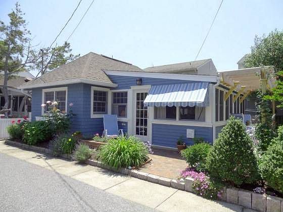30 Stone Court, Stone Harbor NJ. Surprisingly roomy for a Court Property, this special two bedroom one bath New England Style cottage offers a pleasing combination of quaint charm and state-of-the-art convenience, including central air! A total renovation took place in 2005 by David Kolb of Pride Builders with new upscale kitchen and bathroom, large living/dining area for a court property with Heart Pine flooring, bead board walls, surrounding Andersen windows. The exterior is inviting with large private deck with pergola and lush landscaping, kept green with a pressure drip irrigation system installed by Cape Shore Gardens. A brick patio with custom planters offers a charming option for outdoor entertaining.
