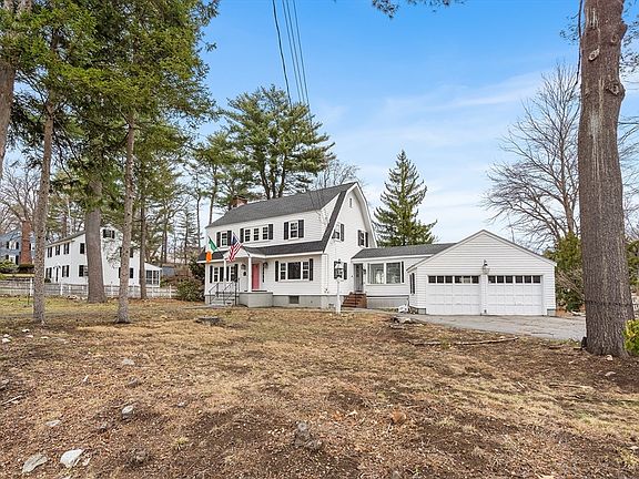 Welcome home to a beautifully updated, elegantly repainted 3 bed 1 full 2 half bath Colonial nestled in a scenic wooded neighborhood on a sprawling 30,527 sf lot. Level 1 features charming living room with stone fireplace and gorgeously refinished, stained hardwood floors throughout both levels. Freshly renovated kitchen with quartz countertops, farmhouse sink, stainless steel appliances, modern cabinetry & glittering backsplash leading to elegant dining room with charming built-ins leading to lovely breezeway sunroom. Level 2 features 3 spacious bedrooms & full bathroom, primary with stunning white stone fireplace & elegant crown molding with delicate rosettes, new lighting fixtures, pretty sconces on dimmers. Abundant storage in the enormous attic space & partially finished basement offering expansion room, including laundry & cedar closet. 2 car garage, stone patio and more, all perfectly situated with easy access to commuter rail, downtown restaurants, highways, Lake Quannapowitt!