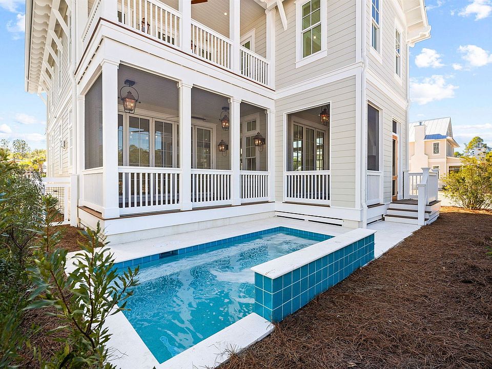 Looking for a NEW home in WaterColor? Check out this exquisite southern living style home designed by Archiscapes. It is a masterpiece of design and comfort, offering bright and luxurious living space.Thoughtfully crafted interior featuring beautifully upgraded finishes throughout. Home is perfect for fun times and coastal living, with open floor plan that seamlessly connects the fabulous kitchen, dining room, and inviting living space with gas fireplace and wet bar creating a central hub for gathering. Kitchen is top-of-the-line with huge island, Sub-Zero and Wolf appliances and walk-in pantry. Versatile floorplan offers two living areas - one upstairs and one downstairs with both having access to covered porches. Residential elevator gives you easy access to both levels