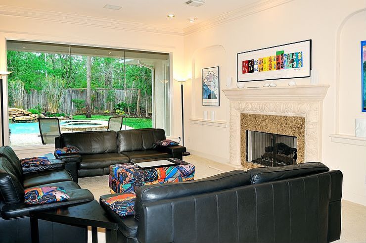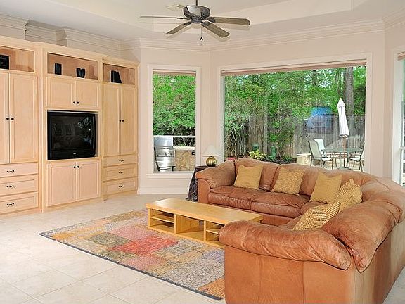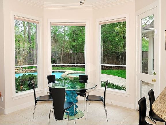 Gorgeous Post custom home on a cul-de-sac in Windward Cove, lakeside neighborhood in Panther Creek! Amazing finishes: curved archways, carpet, stone & tile flrs, built-ins, tray ceilings & more! Gourmet isl kitch w/granite counters, stainless apps & breakfast bar opens to sunny brkfast rm; both formals (living w/gaslog FP); master w/sitting area & 2nd BR down; media rm up; 5th bed c/b gameroom; private study. Backyard oasis w/Rembrandt pool, spa, summer kitchen, covered patio & lush landscaping!