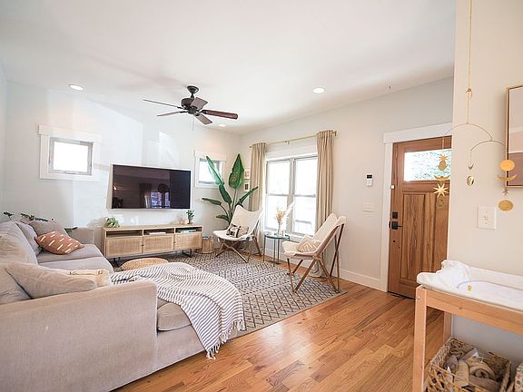 Captivating 2010 "like new" Custom Energy Star/Green Built home in the heart of HOT East West Asheville! Within blocks of New Belgium Brewery, River Arts District, eateries, and more. MASTER ON MAIN with large private deck. Features en suite luxurious bathroom that includes a quartz vanity and a head to toe tiled walk in shower. Recently updated modern kitchen with stainless steel appliances and natural gas stove. The second level includes two bedrooms with vaulted ceilings, a modern bathroom, laundry, and a bonus flex space. Finished basement has a separate entrance, beautiful gas burning fireplace, and built in bar. Large unfinished lower level storage. Short-term rental potential in the lower level ( City of Asheville homestay requirements apply). Outdoor living with a covered front porch, landscaped yard, and spacious decks. 1.4 miles to Downtown Asheville!