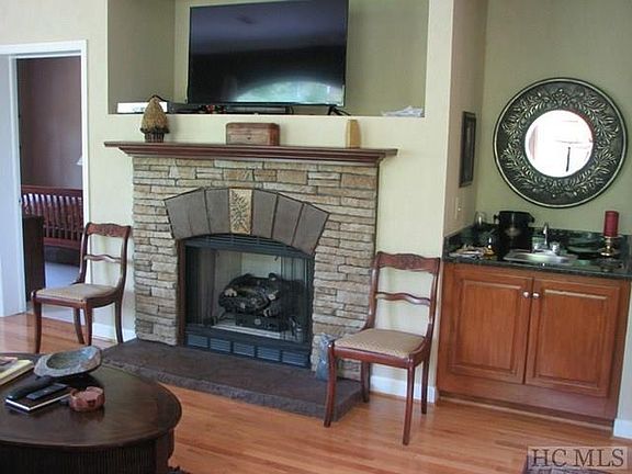 Lower end level turn key unit with a GREAT view of the waterfall at Lake Toxaway. The sound and views of the waterfall are very relaxing and hypnotic. The design, flow, feel, and comfort of this unit make this a perfect retreat. The open floor plan is great for entertaining. The fireplace in the living room adds a cozy feel. The living room and master suite both open out to a covered porch which allows more room for entertaining. Enjoy it or rent it out. Sold mostly furnished.