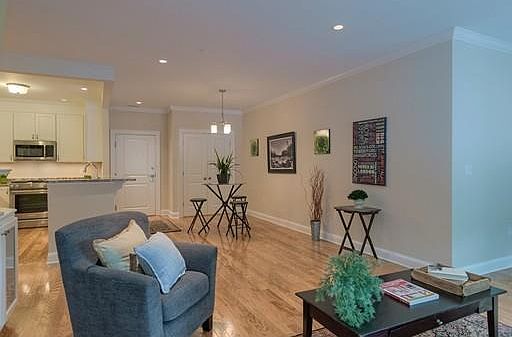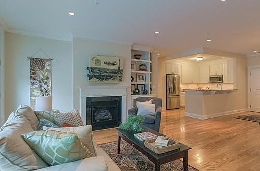Move right into this garden style corner unit in JOHNSON WOODS! This 2 bedroom 2 bath home has an open floor plan. Gorgeous kitchen has custom white cabinets, under cabinet lighting, granite counter tops, SS appliances, wood floors and a breakfast bar. LR has a custom built-in bookcase next to a gas fireplace, recessed lighting, wood floors and a french door leading to a spacious covered deck. Bonus space off LR can be used as a dining area or office. The master suite includes a large walk-in closet, WW carpeting, a luxurious master bath with a marble/glass shower, soaking tub and double bowl granite top sink. Second bedroom has WW carpeting and a large closet. Deeded Parking Space in Garage with storage closet as well as an exterior deeded space. Bonuses include: Custom Blinds in every room Washer/Dryer, Wall Mount bracket installed to accept a flat screen TV. Reading is known for its great schools, vibrant downtown, commuter rail and easy access to the highway.