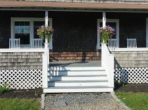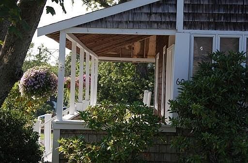 Enjoy beach living without the worry- NOT in a current or proposed flood zone and just a short walk to beautiful Sunrise Beach! Huge wrap around farmers porch and charming brick patio to enjoy the sea breeze in comfort. Gorgeous wood floors throughout. Stunning wood bead board kitchen ceiling. Living room hosts a gas fireplace to make year round living cozy and welcoming! Centered between built in bookcases are beautiful glass paned French doors opening into a four season heated sun room! Second floor offers a spacious full bath with jetted tub and 3 large bedrooms with gleaming wood floors. Windows everywhere allow for natural light to fill each room- bringing the beauty and ambiance of the beach home. Two car detached garage offers a large workbench and plenty of storage. Bonus features include an outdoor shower, irrigation system, full attic, and central air on the second floor! Nice level corner lot with yard and welcoming gardens.