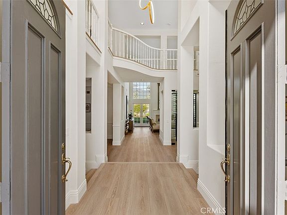 Embrace luxury living in Dove Canyon's gated community, offering the lowest price per square foot. Nestled on a serene cul-de-sac, this executive home boasts expansive views of Cleveland National Forest and Saddleback Mountain. The grand foyer welcomes with 18-foot ceilings and a striking spiral staircase. Entertain in the library with a fireplace and built-ins, formal dining room, and sunlit living room with French doors to the backyard.