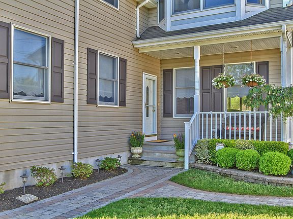 Beautiful waterfront home with many upgrades including newer vinyl bulkhead and trex decking on dock, heated in ground Gunite pool with waterfall & paver patio which making for a maintenance free yard, new appliances throughout, home has hardwood floors throughout and quartz stone countertop in kitchen and wetbar. 2 zone Central Air and washer & dryer on second floor. Enjoy evening sunsets in your backyard or at the private Cherry Quay Beach with available membership. This home is a must see!