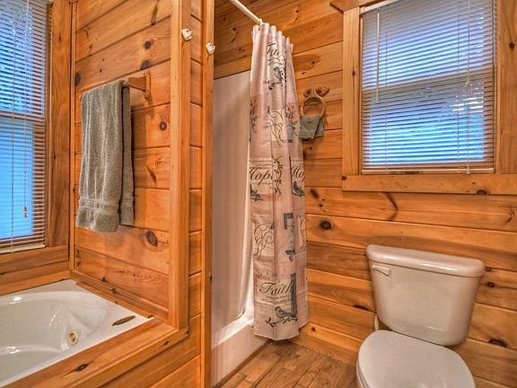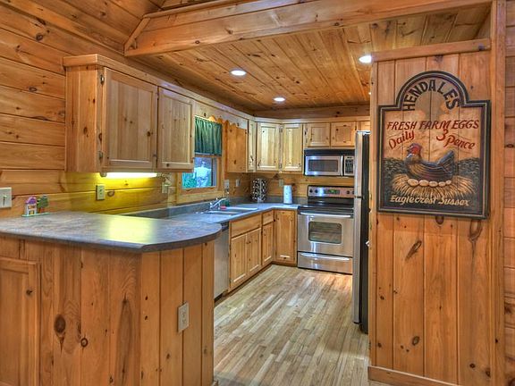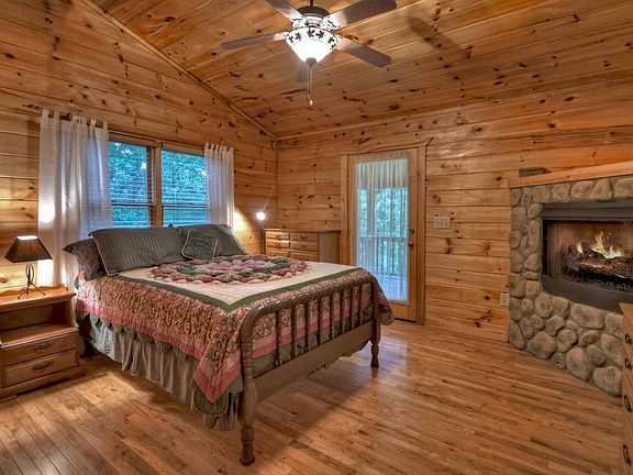 Quaint, quiet and cozy up in this country cabin 3 bedrooms/3 baths + lovely loft area, open living /kitchen/dining concept with massive stone wood burning fireplace & soaring ceilings, master suite boasts private screened balcony & spacious bath/walk in closet along with gas log fireplace, cute kitchen features warm pine cabinetry & stainless appliances, fully finished terrace level with guest quarters & rec room/den with, perfect area for wet bar, walk out patio, plentiful windows to take in the wooded and seasonal Mountain View, layers of plentiful porches & decks overlook storybook setting with mature landscaping & abundant wildlife, plenty of storage and parking, easy access, rustic community with mostly paved access and gorgeous surroundings, minutes from historic downtown Blue Ridge, Lake & River, furnished for a ready to go getaway great rental potential it's a must see!
