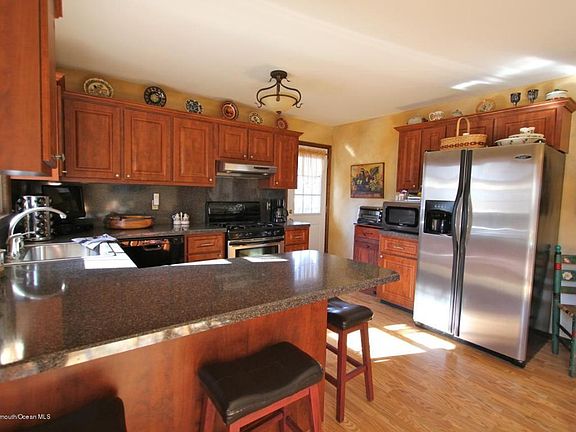 SHARK RIVER HILLS EXTRAORDINARY & HANDSOME HOME GREAT CHEF'S KITCHEN WITH BREAKFAST BAR. DINING WITH SLIDERS TO THE BACK YARD WITH SOUTHERN EXPOSURE, INGROUND POOL, PATIO AND ROOM FOR YOUR VEGETABLE GARDEN. ELEGANT & COMFORTABLE LIVING ROOM , WRAP AROUND DECK. FIRST FLOOR FAMILY ROOM AND 1/2 BATH COULD BE MADE INTO DEN AND 4TH BDRM. 2 CAR GARAGE. JUST STEPS TO THE RIVER YET NOT IN THE FLOOD ZONE.
