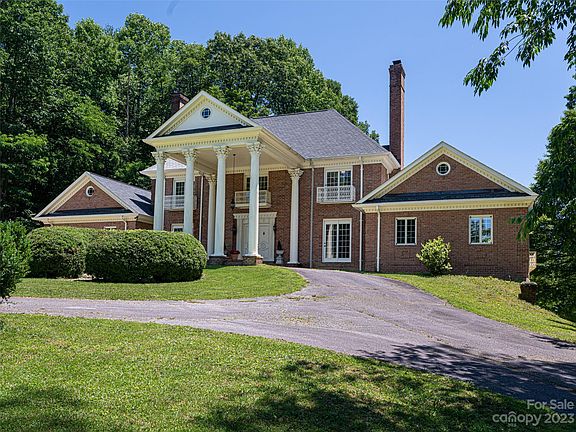 Southern grandeur and curb appeal abound in this 5 bedroom, 4+ bath Palladian-Georgian inspired family estate privately situated on 4.7+/- acres in Historic Flat Rock’s prestigious Trenholm Woods. Designed by renowned American architect Mike Tecton and constructed in 1984 by Donald Justus, this residence presents an unparalleled prospect for renovation enthusiasts or investors looking to add value. Upon entry through the 8-foot-tall mahogany wood French doors, one is greeted by a two-story foyer, double staircase with wrought iron balconies and Italian Carrera marble flooring. Main floor primary bedroom, situated in its own wing, features balconied views of the picturesque woods; while the second floor boasts 4 spacious bedrooms. The great room is a true centerpiece with soaring 25-foot-tall ceilings and herringbone parquet floors. Corinthian columned Porte Cochere and circular driveway. This property is a dream home waiting to be unlocked. Some renovations started but not completed.