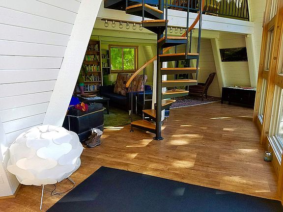 Loft style A Frame main house 1,927 sf. Riverfront property. 15 acres with shop and small buildings.