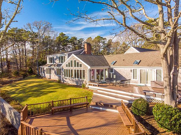 Spectacular! Everything about this property is spectacular especially the expansive pristine view of Quanset Harbor out to Pleasant Bay! Situated on 2.15 acres, this 5 bedroom home includes a boathouse with a deck, living area and a full bath. Located in the prestigious Quanset Harbor Club, the drive to your home is beautiful with its park-like setting replete with ponds, conservation trails, an association beach, dock and even the possibility of a mooring. The home itself has spacious indoor and outdoor living areas with two decks, a patio, two fireplaces, built-ins, a wet bar with wine cooler and refrigerator, several different dining areas, a chef's/caterer's kitchen that has double appliances (ovens, dishwashers, refrigerators - there are even double washers and dryers), a 3000 bottle wine cellar, several separate bedroom areas with full baths and the spectacular views are from almost every room! Private and rare, this property has it all. They say a picture speaks a thousand words, but in this case, only a visit can truly capture this spectacular property!