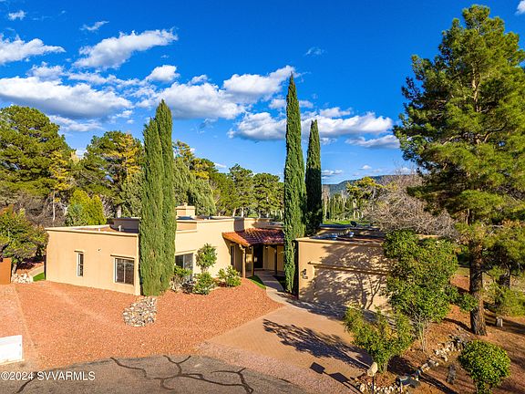 Incredible oasis where the famous Red Rocks meet the emerald green grass. Perfect location on the 10th Green of the Oak Creek Country Club Golf Course. Extensive views down the fairway. On a quiet cul-de-sac with just 3 homes. Custom Santa Fe/Southwest Style home remodeled from top to bottom. Relax in contemporary luxury with large beam ceilings & a wood burning fireplace. Brand new appliances with a 5 burner cooktop & stylish vent hood. New white cabinets with lots of storage & beautiful, big quartz countertops, making cooking & entertaining a breeze. 3 bedrooms are all very spacious. 2 are ensuites that view the stunning course & new easy care landscaping. Three large bathrooms with high-end finishes and gorgeous tile. New vinyl plank flooring, AC, & paint. All ready to move you home!