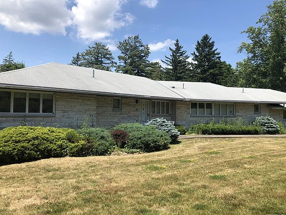 Come home to a house that's ready for your personal touches! This beautiful ranch was custom made with marble stone from Portugal for the home's exterior & also for family room's fireplace. Look up on the patio & balcony to see beautiful Redwood soffit. Basement is ready for your imagination, in-law apt,apt,etc with its own add'l garage holds up to 4 cars;back patio entrance, bath/bdrms. Mechanical upgrades include new furnace replaced 2020 and 2 40gal water heaters for both ends of house. Prop being sold AsIs,in need of update but incredible amenities/bones. Prop was subdivided recently so sewer line will need to be relocated @ seller's expense, small corner of driveway to be removed (see attached map in documents for clarity). Taxes should also be reduced bc land went from 2.4 to 1.4ac