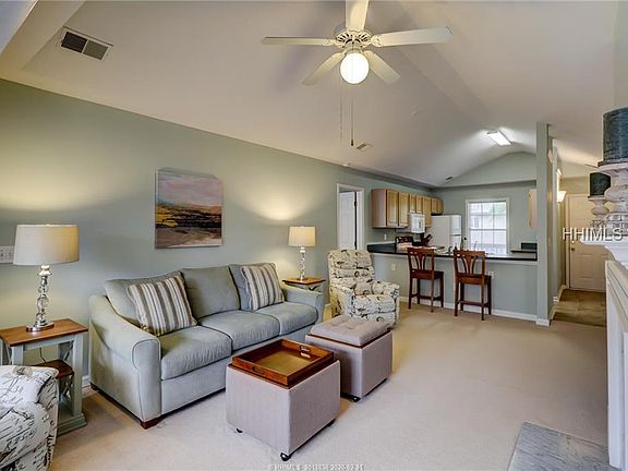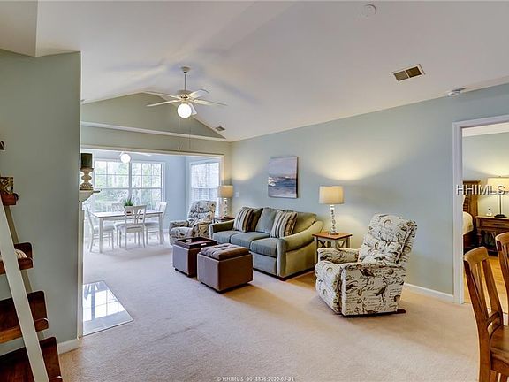 Tucked away in a secluded cul-de-sac at the end of Valencia Dr. in Shipyard, this small villa complex offers a relaxing getaway for a vacation or permanent home. This 2BR/2BA duplex style villa has an open kitchen/living and dining room/sun room concept and wonderful bedroom separation. Large bedrooms with walk-in closets. All rooms have a wooded and lagoon view. Even more unique is the huge 2+ car garage and enclosed large storage area under the villa. All new furnishings with coastal decor. This villa is in pristine condition. Easy to show!