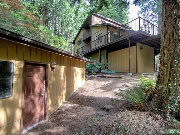 Spacious home nestled on near half acre includes 3 lots giving the ultimate outdoor oasis feel. Split multi-level features ample storage space throughout. Bright living room, dining & kitchen all located on entry level. Huge 660 sq ft wrap around deck off living room provides lots of room for outdoor entertaining. Covered parking for 3+ vehicles, 3 BD/2BA +den. Master bedroom has attached bath w/ soaking tub. Amenities nearby: golf course, marina, pool, tennis courts, & beaches on Lake Whatcom!