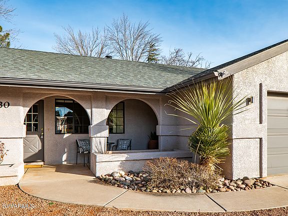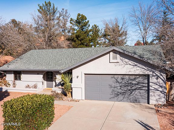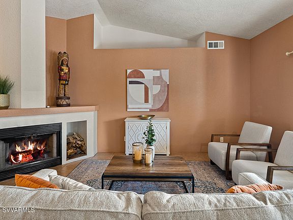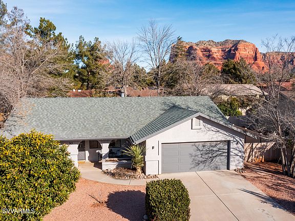 Step into your spacious living room complete with vaulted ceilings and wood burning fireplace. This 3 bed, 2 bath has been nestled into a quiet neighborhood with amazing views of towering red rock and blue skies! This home has been recently updated to make it move in ready. Private backyard with low maintenance landscaping. Master bedroom with walk in closet and double sinks. This home has all the charm needed to make it a dream retreat. All appliances convey, including extra refrigerator in garage and hot tub.