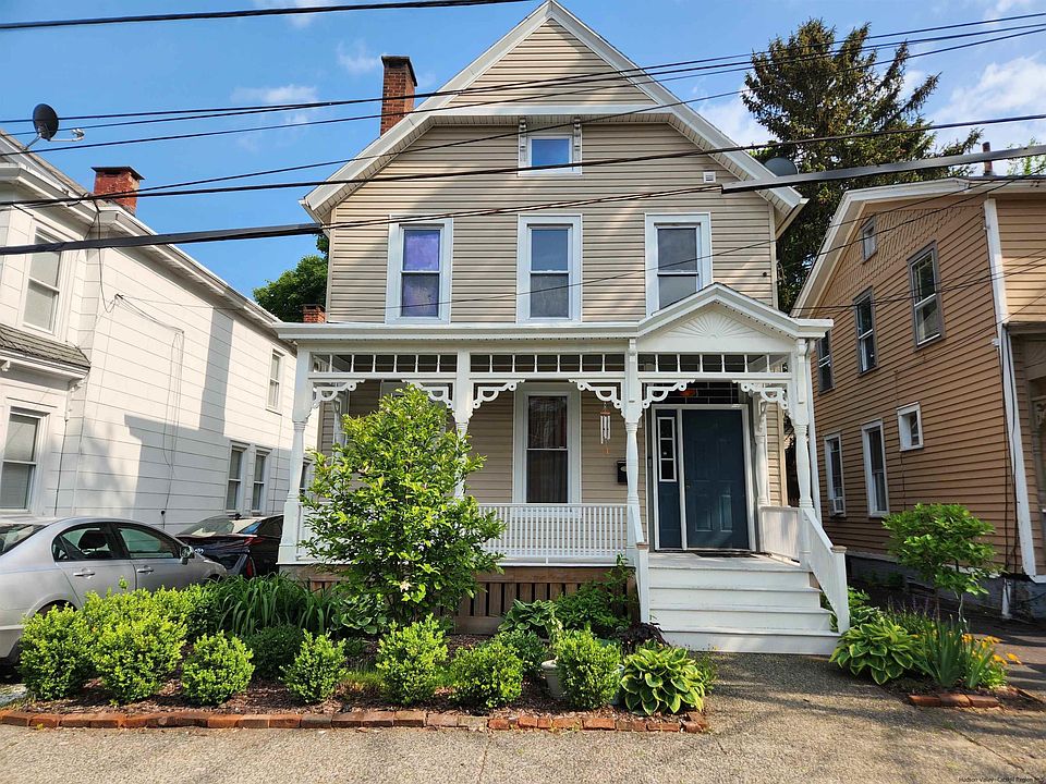 This beautiful well-cared-for home is conveniently located to midtown Kingston and all it has to offer. This home offers hardwood floors throughout. Radiant floors in the kitchen. A large walk-in closet in the primary bedroom. A finished walk-up attic that can double as a guest room or office with plenty of storage nooks. There are built-in bookshelves in the living room for all of your storage needs. HVAC, Fridge, stove, washer and dryer were all replaced in 2022 This home has a fenced-in back yard complete with an herb garden full of lemon balm, sage, oregano, and wild mint just to name a few. The front of the home has a rocking chair porch and is surrounded by hydrangeas. This home is a must-see!