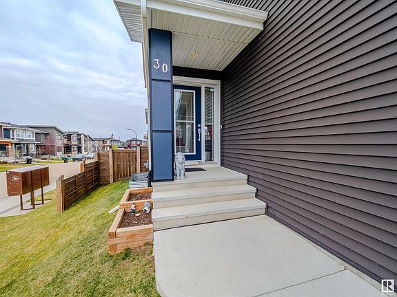 Modern half duplex is located in a desirable neighbourhood of Kenton in Spruce Grove, walking distance to many amenities: Jubilee Park, grocery stores, restaurants, doctor's offices, salons, gyms & new Heavy Metal Place (hockey arenas). Also quick access to Yellowhead Hwy for commute to Edmonton (bus stop is a block away as well)! The home itself is only a few years old with landscaped and fenced yard. Bright main floor offers open kitchen with large island, stainless steel appliances, spacious living room and dining area with patio doors to the deck. 2 pc bath & large mudroom complete this level. Upstairs you will find 2 bedrooms plus main 4 pc bath, upstairs laundry and generous primary bedroom with 4 pc ensuite and walk in closet. Single garage and plenty of parking make this home irresistible!