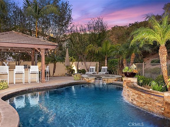 This move-in-ready, turn-key, upgraded home w/ Solar displays style, beauty, space, & absolute privacy in the posh, Talega gated Catania community, nestled in the hills of San Clemente. Light, bright & open main level welcomes you w/a formal foyer. Enjoy prim living room w/inviting fireplace conveniently leading to elegant dining room. Over-sized family room, w/additional cozy fireplace, opens directly to kitchen which is complete w/a charming breakfast nook, pantry, rich cabinetry, stone countertops & huge center island! High-end, SS appliances include six-burner cooktop w/ grand vent hood, Sub-Zero refrigerator, dual ovens & much more. Beautiful doors lead to the backyard from the kitchen, where you’ll find custom hardscaping & mature landscaping- provide extreme curb appeal on this 8,500sq.ft. lot that backs up to quiet hillside w/no properties located behind it! Scenic stone pathways, built-in BBQ island w/ custom dining pavilion- all complimented by a stunning pool & spa w/tranquil water feature. Views of the beautiful grounds are enjoyed from almost every room in this luxurious residence, which hosts spacious bedrooms (one located downstairs) & elegant baths in almost 3,800 sq. ft. of comfortable living space. The lower level is also home to a generously sized bonus room- providing a versatile gathering space w/yard access & private en-suite. Second-level primary suite will not disappoint! French doors lead to relaxing balcony where you can enjoy the sound of silence. Primary en-suite features huge soaking tub, large walk-in shower w/gorgeous custom tile & dual vanities for plenty of individual space. Upstairs bedrooms are roomy & comfortable, sharing a tastefully updated & chic bathroom. Archways, designer tile & carpet flooring, updated ceiling fans & oversized laundry room w/cabinetry will make all your dreams come true. Custom driveway leads to attached 2-car garage w/built-ins & Epoxy flooring. Also, Rental Solar w/ Tesla. Landscaping & Hardscaping Front & Backyard, & Pool/ Jacuzzi w/additional landscaping completed in 2006. H2O Heater replaced in 2022. Exclusive Talega offers natural open space w/resort style living & tremendous amenities~including Vista Del Mar school, an 18-hole golf course, 4 community pools, 7 kids play parks, hiking trails, monthly community events, nearby shopping, & much more! Only mins away from downtown San Clemente, famous SoCal beaches & exceptional restaurants. Welcome Home to your Own Private Paradise by the sea!