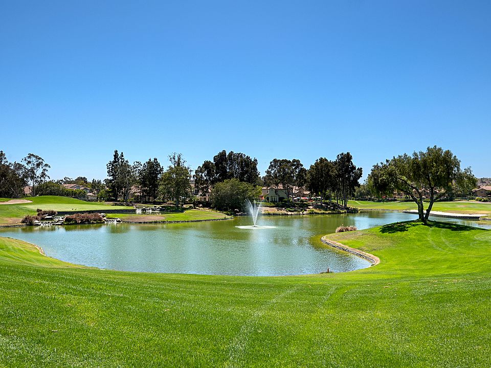 RARE SPECTACULAR TIJERAS CREEK GOLF COURSE & LAKE W/FOUNTAIN VIEWS! This stunning & beautifully BRIGHT home overlooks the 5th hole & boasts a spacious ground level floor-plan. The beautifully UPGRADED KITCHEN has granite counter tops, custom backsplash, Elkay deep sink, recessed lighting, crisp white cabinetry, stainless appliances & 5 burner gas stove make this kitchen perfect for the gourmet! The generous living room, kitchen, entryway and halls have new water resistant chic wood style vinyl flooring with dramatic contemporary baseboards! The living room features a cozy gas fireplace, tons of windows & natural light w/privacy, & a large formal dining area. Upgraded energy efficient windows with Levolor cordless blinds, NEST thermostat & RING doorbell w/STATE OF THE ART SURROUND SOUND. Each bedroom has a private bathroom & have been beautifully UPGRADED w/Kohler toilets, Quartz counter tops & updated fixtures. Wonderfully bright & neutral contemporary paint palette throughout make for a coastal/beachy atmosphere. The master bedroom includes access to the wrap around patio with PANORAMIC VIEWS. The 2nd bedroom is spacious & has its own private view patio. VERY RARE TWO GARAGES included & both have convenience separate utility man-door access. The community offers a pool, spa and fitness center as well as Rancho Santa Margarita Lake amenities, Beach club, Lagoon, Tennis courts, Dog Park & much more! Enjoy nearby shopping, dining & entertainment! FHA and VA approved!