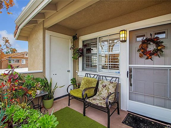 Adorable upper end unit with no one above. Spacious front porch with awesome mountain and city lights view. The entire home has been remodeled and updated. Beautiful wood flooring, vaulted ceilings accented by custom paint and custom baseboards. Tastefully decorated with Plantation shutters and all new fixtures and panel doors throughout. Kitchen features granite counters, new sink and faucets, gas stove, dishwasher and beautiful custom back splash. Each bedroom has custom closet organizers and the spacious master has vaulted ceilings! Remodeled bathroom with granite vanity, custom mirror and light fixture and faucet. Indoor laundry with washer/dryer included. Home is in perfect location which is close to shopping, banks, restaurants, library, lake and parks. Rancho Santa Margarita has the best amenities! Lake, Dog Park, Skate Park, Pools, Parks, lighted Tennis Courts, hiking and biking trails. A great lifestyle with excellent schools! Get in now at this low price and low interest rates and quit renting!