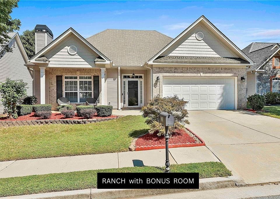 Looking for a spacious ranch-style home with a bonus room? This charming 3-bedroom, 2-bath property with an adorable fenced backyard has it all! The kitchen features rich pecan cabinetry, solid surface countertops, black appliances, and a convenient bar with a pass-through view into the large great room with a cozy fireplace-perfect for entertaining.The main level offers a large primary suite with a double tray ceiling, walk-in closet, and a spa-like ensuite boasting double vanities with granite countertops, a separate shower, and an oversized garden tub. Two additional bedrooms, another full bath, a laundry room, and an attached 2-car garage complete the main level. Upstairs, you'll find a versatile bonus room-ideal as a second living area, home office, or even a 4th bedroom. The master suite opens directly to the backyard patio, creating the perfect spot for morning coffee or evening relaxation. Subdivision has amenities pool, playground & park. All Near hospital - medical hub - grocery - shops & restaurants. Super great Access to I-85 & Atlanta airport! *Walk through video available at request.