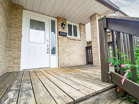 Stunning Gem! Freshly painted with a bright, open-concept design! Features a spacious family-sized eat-in kitchen with walk-out access, a large living and dining area, and a generous deck perfect for entertaining. Includes a convenient main-floor powder room. The expansive primary bedroom offers a double closet, accompanied by two additional generous sized bedrooms. The lower level includes a recreation room, a den, and a 3-piece bathroom. Relax on the charming front porch! Close to shopping, parks, transit, schools, and restaurants. Digitally staged for illustration only Offers welcome anytime.