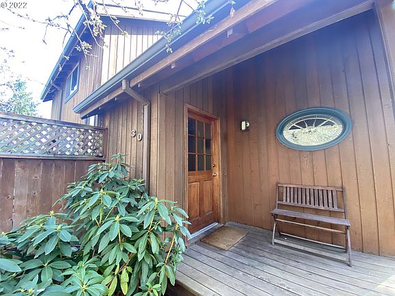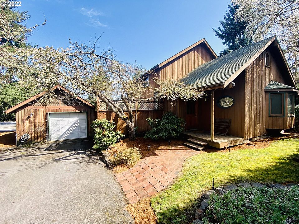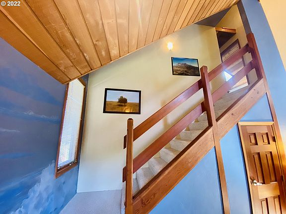 Welcome to a Beautiful NW Contemporary in SW Eugene Neighborhood! The Living Room Offers Wooden Vaulted Ceilings and a Skylight, Gas Fireplace, Hickory Hardwood Floors and Custom Windows. Open to the Dining Area and Kitchen that has Stainless Appliances, Tile Counters,& Plenty of Cupboard Space, Pantry, and Indoor Laundry. One Bedroom and Bath Downstairs. Primary Bedroom Suite Upstairs With Carpeting, Dual Closet. Straight-Up Ladder to Loft,not incl. in Sf. Fenced Backyard, Carport w/Storage.