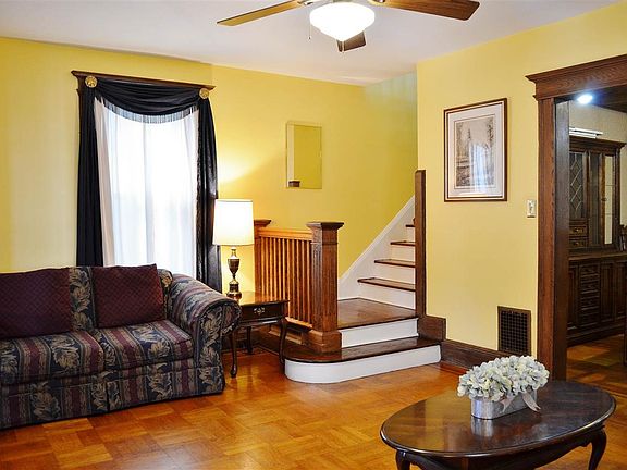 " UPTOWN CHARMER"! This well maintained home offers plenty of functionality and flexibility. Extra room on the 2nd floor could be a den, home office, or additional bedroom. Third floor could be a "teen suite" or a bonus space for recreation. Very large primary bedroom with extra seating area; and lots of natural woodwork adds character throughout the home. Sliding glass doors in kitchen lead out to large deck with manual sun/shade awning and patio space for extra seating along with generous storage sheds. Located in close proximity to Hudson County Parks, uptown Light Rail station, and easy access to NJ Turnpike.