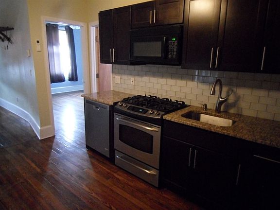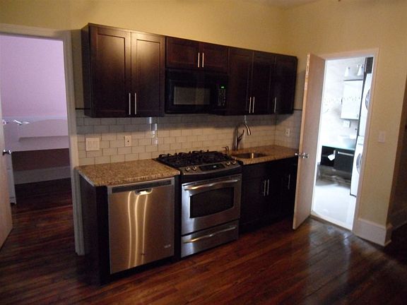 Renovated 2 bedroom unit on 2nd floor. New kitchen, bathroom. Hardwood floors with radiant heat. Washer/dryer hookup in bathroom for stackable units. Dryer must be ventless. Tenant pays heat and utilities. No pets