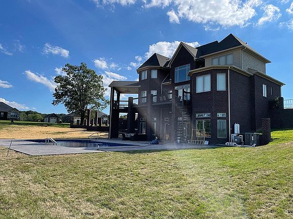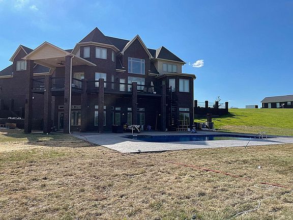 Exquisite owner/builder 5 bedroom 3.5 bath 7200 square foot home sitting on almost 2 acres in beautiful Morning Woods subdivision. Built in 2019, this home is like no other with so many unique features. So much area for entertaining inside and out!! Geothermal heat and air. Newly installed pool with huge beautiful stamped patio off the house and around the pool. Pool has its own heat pump. 16 foot tall basement walls. Safe/ panic room. 3 car oversized garage. Entire house is hardwood floors and travertine and the upstairs bedrooms have carpet. 8 foot tall doors on main level. All real wood trim/base/ and casing through entire house. Gorgeous double front entry door is 12 foot tall and enters in to the foyer with chandelier and 22 foot ceilings in living area. Living area features huge beautiful built-ins and massive gas fire place. The kitchen features custom ceiling tall cabinets and a massive island with sink. Gourmet oversized gas stove with ansil system and pot filler. Other kitchen features include a custom back splash, pantry with matching cabinets and granite counter tops, 2 beverage refrigerators, and instant hot water. Nice laundry room on main level with very nice sink and cabinets. Built in shelving/mud room when you enter in from garage. Half bath is on main floor. Master bedroom is located on the main floor and has gorgeous master bath with huge stand alone jacuzzi tub and travertine shower. 2 separate vanities with custom cabinets. And a large walk in closet. Dining room features beautiful custom tray ceilings and chandelier. Huge back deck that runs almost the length of the entire house. Custom spiral staircase from back deck to back patio. Partial back deck is stamped concrete with roof and ceiling fan and rest of the back deck is composite wood. Custom huge out door fireplace with tons of space for entertaining. Upstairs you will find 3 additional bedrooms. Two of the bedrooms feature built in window seating. Huge upstairs bathroom with jacuzzi tub and shower and 2 separate vanities with custom cabinets. Basement has 16 foot walls and features one bedroom, room set up for theatre, safe/panic room, bar, Pooltable/ game room (or whatever you want to use it for). Basement is almost completely finished just waiting for the granite and finishing touches. This house is truly a must see to appreciate! Home has way too many features to mention. $1,300,000.00 REDUCED $1,100,000.00
