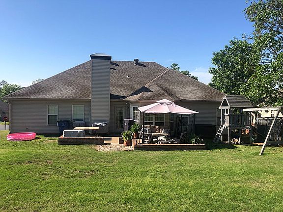 Great 3BR/2Bath one owner brick home with split bedroom floor plan and open living areas on large corner lot in a quiet cul de sac. Hardwood floors in living room, dining room, and hallways. Nine foot ceilings throughout the house, with tray ceilings in the living room and master bedroom. Custom crown molding throughout the house. Stainless appliances in the kitchen with a large eat in breakfast area with bay window. Wood burning/gas fireplace with custom mantel. Large back patio and yard. Oversized two car garage with storage. High efficiency tankless water heater.