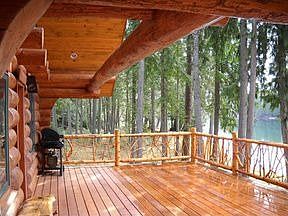 LOG HOME w/waterfront. 100' of shoreline, 40x60 shop w/500 sf guest apt. Deck, wood floors, water views, high-end appl. & mature trees. $259,000 Call Charesse #21100585